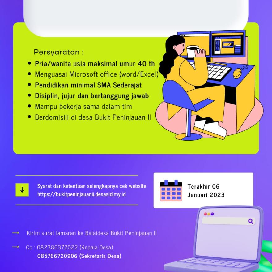 PENGUMUMAN PENDAFTARAN OPERATOR DESA BUKIT PENINJAUAN II KECAMATAN SUKARAJA Pengumuman pendaftaran tenaga operator desa ...